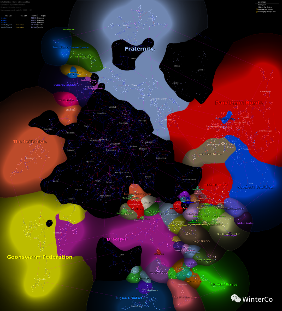北方就全部结束了,下一次北伐什么时候来谁也不知道。我们的核心区域没有西迁,你可以看到我保持了很好的克制没有盲目扩张。菲德只有哨站星系,甚至德克连也是非FRT基础设施中心,黑渊只收复了任务区所需的必要星系。所有的FC和成员都应该吸取B2的教训,外围领地是经济区域,在防御战争时可以抵抗但不可赌上所有,当断不断的后果就是雪崩。前两个掌握北方全境的实体是2011-2015年蜜蜂和2010年前的原版Northern Coalition,希望我们能吸取前人的教训,强壮的存在下去。