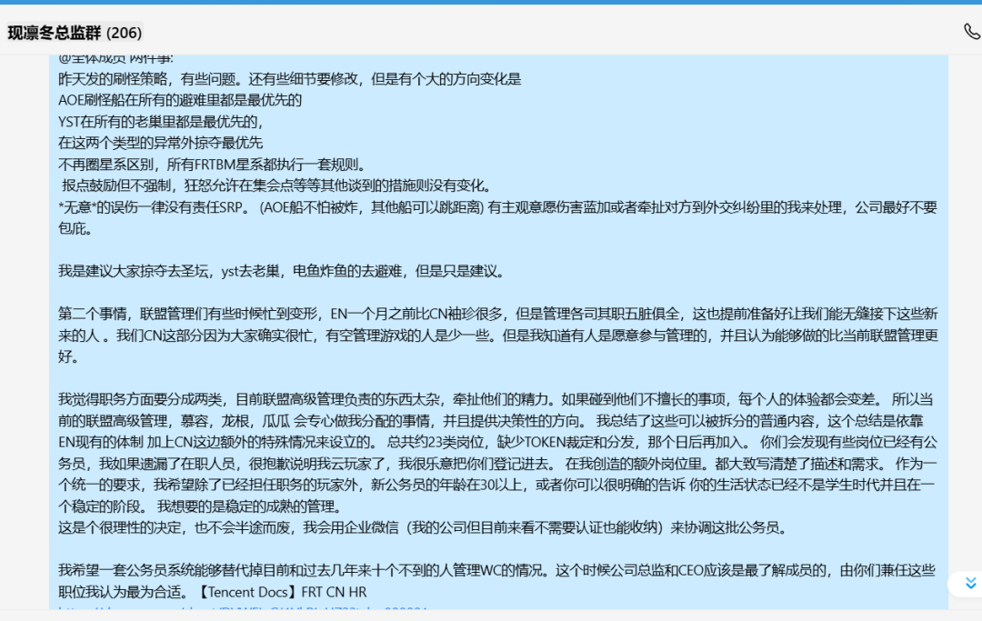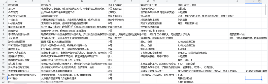 第二点,我今日凌晨以总监群开始,也发布了一份名单,共计约23种岗位,全部履行完大约需要60人左右,这还不到总监群⅓的人数,目前我在处理申请的阶段。现在公布出来,也允许联盟内普通成员参与。