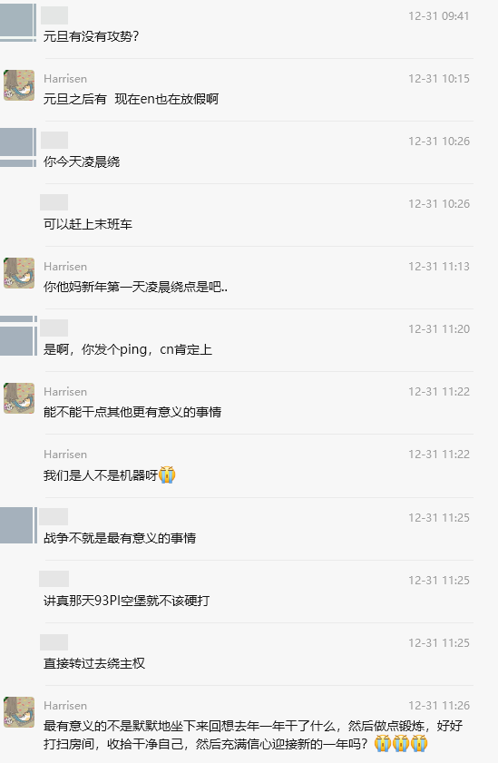 年末更新(下) 已经完成了,但是我想要表明主次,这场和INIT的战争,或者是下场与帝国的战争都可以等,FRT破旧的摇摇欲坠的管理制度也可以等,今天我们迎接新年。